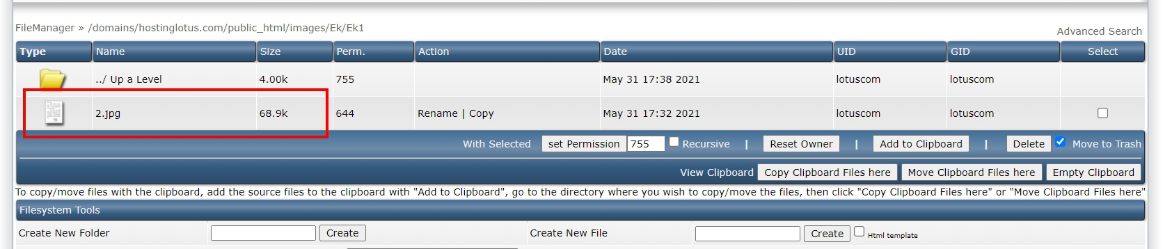 วิธีการย้าย File ด้วย File Manager ใน DirectAdmin Control Panel