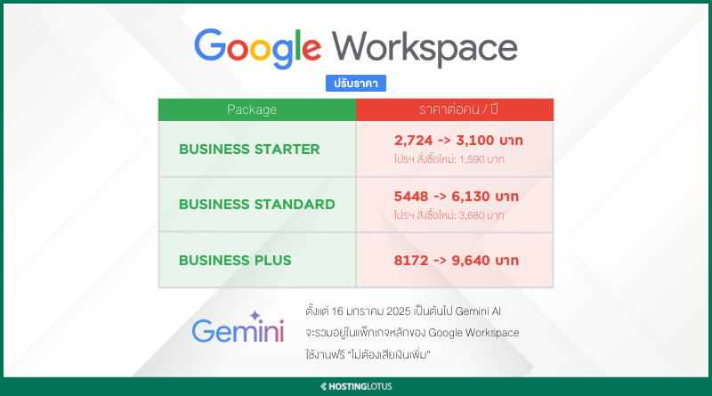 อัปเดตราคาใหม่ Google Workspace 2025