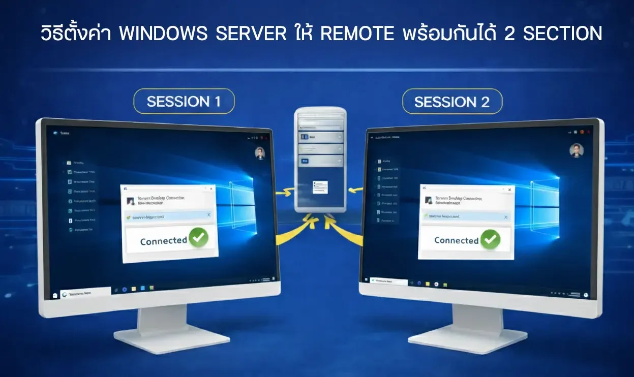 การใช้งาน Remote Desktop บนเซิร์ฟเวอร์เป็นเรื่องสำคัญ โดยเฉพาะในกรณีที่ต้องการให้ผู้ดูแลระบบ 2 คนเข้าใช้งานพร้อมกัน บทความนี้จะอธิบายวิธีตั้งค่าให้สามารถ Remote พร้อมกันได้ 2 Session บน Windows Server 2016 โดยไม่ต้องติดตั้ง Remote Desktop Services (RDS) และไม่ต้องซื้อ License RDS CAL เพิ่ม Windows Server 2016 มีโหมดการใช้งาน Remote Desktop แบบ Administrative Mode ซึ่งอนุญาตให้
