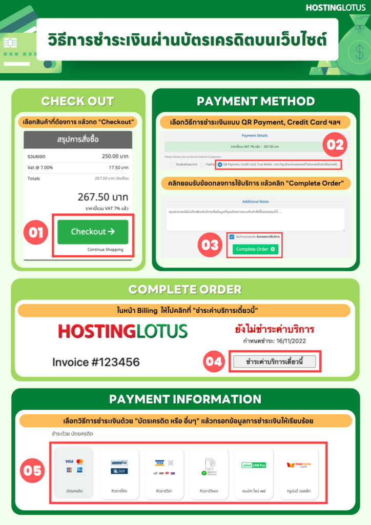 – สำหรับนิติบุคคลมียอดค่าบริการตั้งแต่ 1,000 บาท ขึ้นไป สามารถหักภาษี ณ ที่จ่าย 3% และสามารถจัดส่งเอกสารได้ตามข้อมูลนี้บริษัท โฮสติ้ง โลตัส จำกัด (สำนักงานใหญ่)